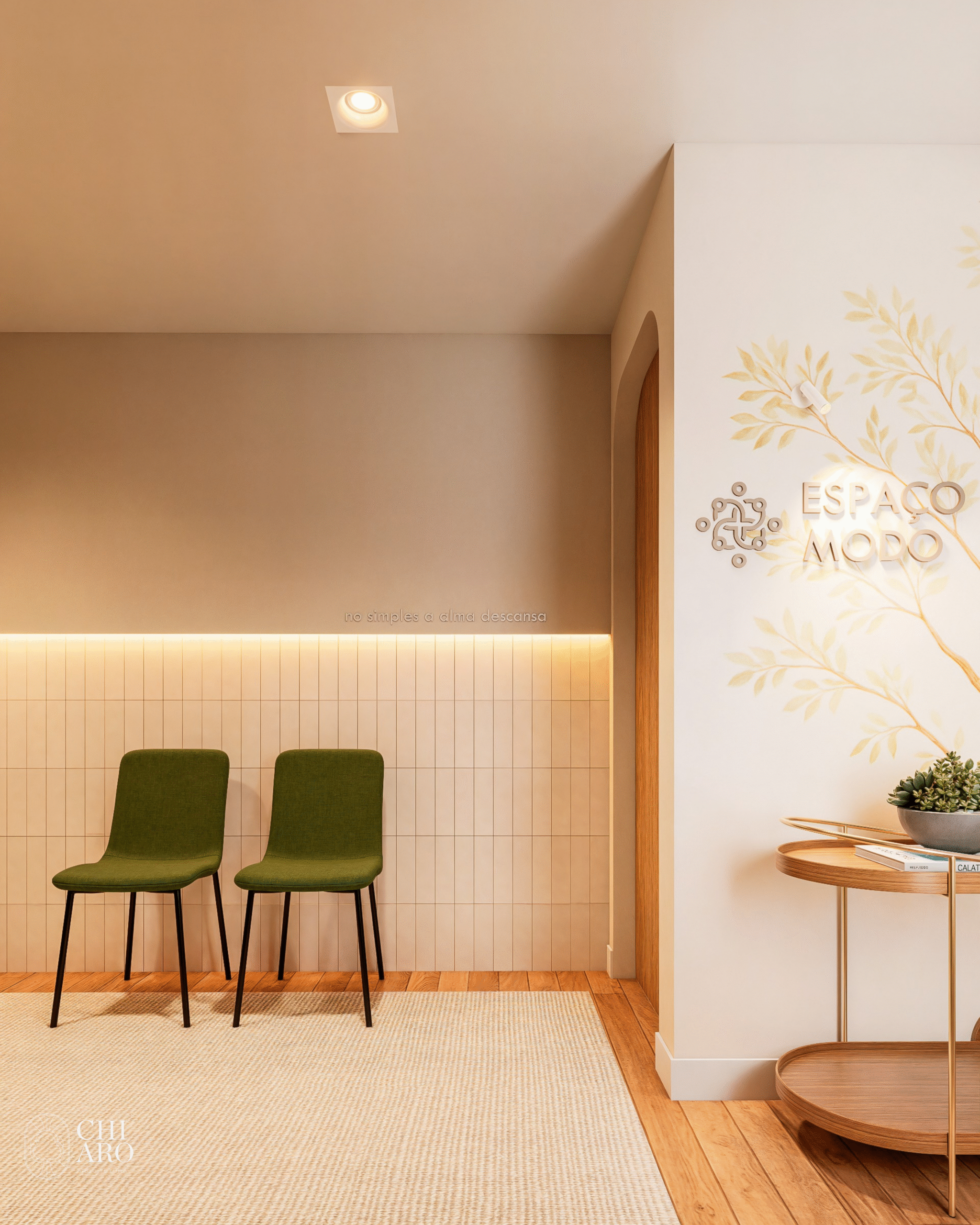 Ambientes planejados com conforto, harmonia e estética sofisticada, oferecendo uma experiência acolhedora para profissionais e pacientes.